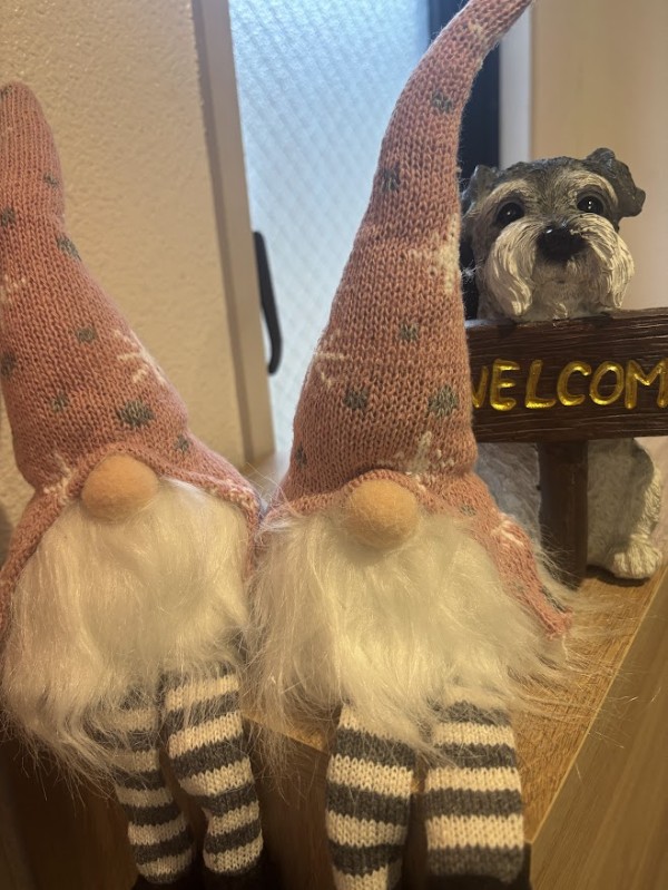 さて、実は利用者様が利用されている靴箱の上に双子の小人ちゃんとワンちゃんの置物を設置しました🫶
