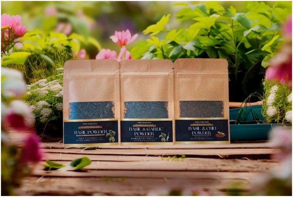 また自然乾燥させて作るバジルパウダーなどもオンラインショップBASEにて