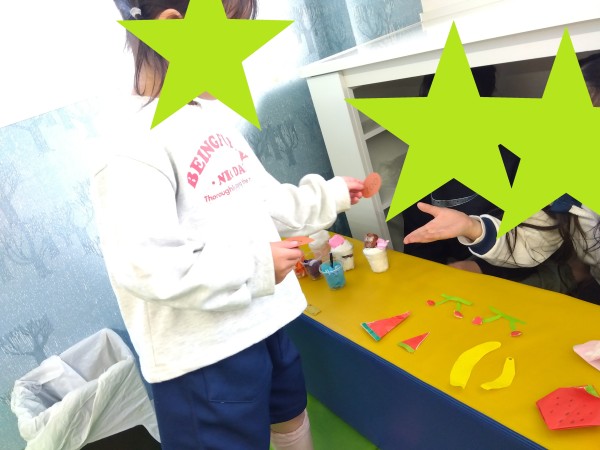 「これなあに?」「これください」などやりとりをしながらみんなでたくさんお買い物をしました😊